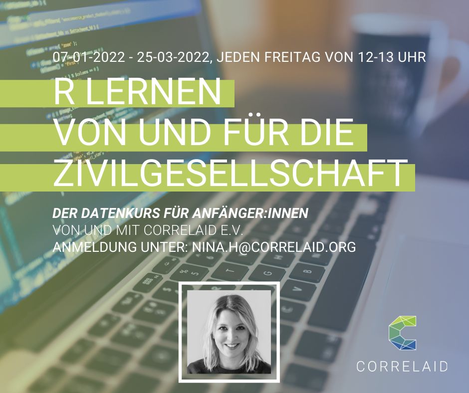 Mit dem zwölfteiligen/-wöchigen Online-Kurs “R* Lernen – Der Datenkurs von und für die Zivilgesellschaft” hilft CorrelAid e.V. den Menschen und Organisationen, die die Welt mit ihrer Arbeit besser machen wollen, dies effektiver und effizienter zu tun. In dem Bildungsprojekt zeigt CorrelAid e.V., wie Daten Akteur:innen der Zivilgesellschaft dabei unterstützen, die Qualität ihrer Programme zu sichern, diese zu lenken und sich nach außen hin zu legitimieren. Dabei arbeiten die Inputgeber:innen praxisorientiert, mit gängigen IT-Tools und in einfacher Sprache, um gesellschaftlich engagierten Organisationen und Akteur:innen ein niedrigschwelliges Angebot im Bereich Datenkompetenz und Data Literacy anbieten zu können.
